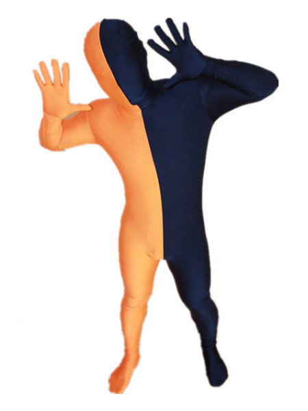 Full Body navy blue and orange Lycra Spandex Close-fit high Elasticity Zentai Suits. Navy blue and orange color with zipper on the back. This is our new style Black and Green fullbody suit. this costume is fit for on the halloween party or the Stage Performance. now many people also buy the zentai suit as a gift to her/his friends. it is a new style special gift. want to give him/her a suprise on the baby birthday ? This fullbody zentai suit is one of the best choose. we can provide the chirldren size, and costum made for them, yoy can just choose a size and then leave the message about the size on the comment place. then we will make the costum follow the size you give us.the price is the same as the normal one.