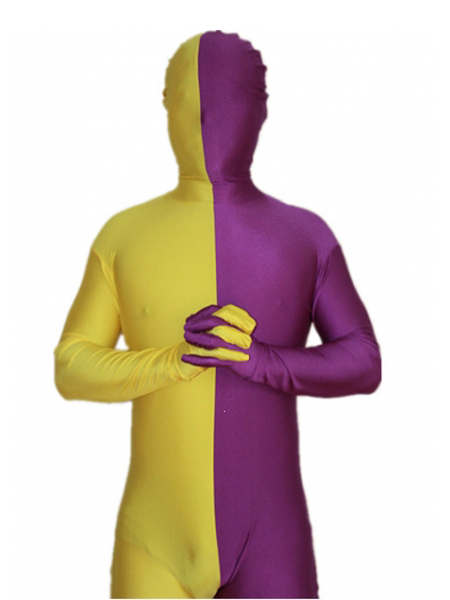 Purple and Yellow Tight Lycra Spandex Zentai Suits Full Body Yellow and purple Lycra Spandex Close-fit high Elasticity Zentai Suits. Yellow and purple color with zipper on the back. This is our new style Yellow and purple fullbody suit. this costume is fit for on the halloween party or the Stage Performance. now many people also buy the zentai suit as a gift to her/his friends. it is a new style special gift. want to give him/her a suprise on the baby birthday ? This fullbody zentai suit is one of the best choose. we can provide the chirldren size, and costum made for them, yoy can just choose a size and then leave the message about the size on the comment place. then we will make the costum follow the size you give us.the price is the same as the normal one.